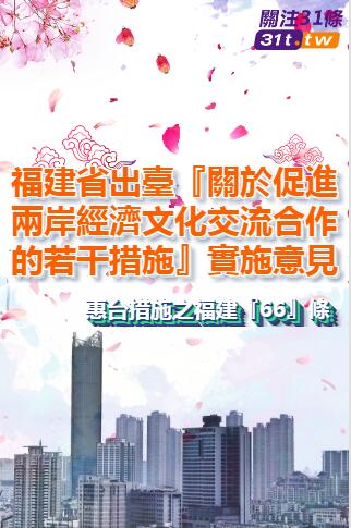 點擊上圖,了解《福建省貫徹〈關于促進兩岸經(jīng)濟文化交流合作的若干措施〉實施意見》。