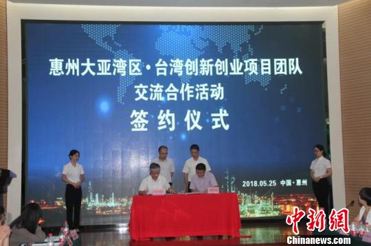 圖為惠州大亞灣區(qū)與臺灣創(chuàng)新創(chuàng)業(yè)項目團隊進行交流合作簽約!】敌⒕辍z