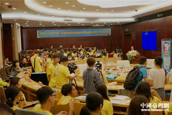 “第四屆臺(tái)灣高校新聞傳播專業(yè)學(xué)生暑期來湘‘愛·在芒果’實(shí)習(xí)交流活動(dòng)”正式啟動(dòng)。(圖片來源:湖南省臺(tái)辦 王玨攝)