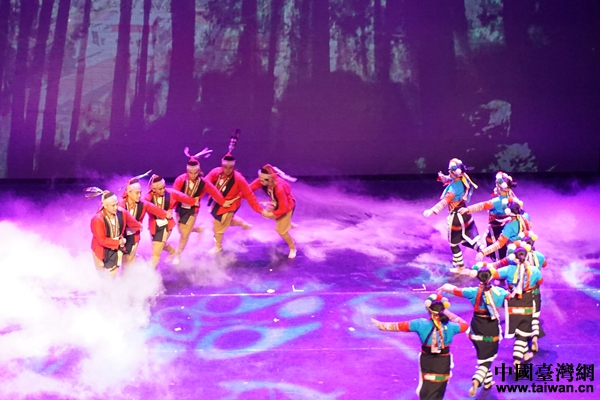 臺(tái)灣少數(shù)民族表演嘉賓表演節(jié)目《舞躍阿里山》。(中國臺(tái)灣網(wǎng) 張玲 攝)