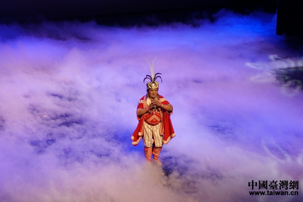 臺(tái)灣太魯閣族表演嘉賓演唱臺(tái)灣少數(shù)民族民謠《美麗的太魯閣》。(中國臺(tái)灣網(wǎng) 張玲 攝)
