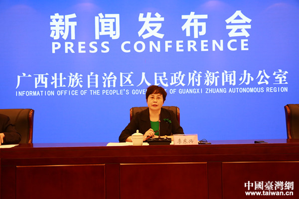 廣西臺(tái)辦主任介紹《關(guān)于促進(jìn)桂臺(tái)經(jīng)濟(jì)文化交流合作的若干措施》制定情況。(圖片來源:廣西臺(tái)辦)
