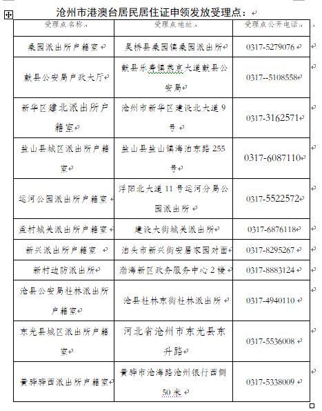 根據(jù)公安部、省公安廳的統(tǒng)一部署,滄州市9月1日起受理發(fā)放港澳臺(tái)居民居住證。