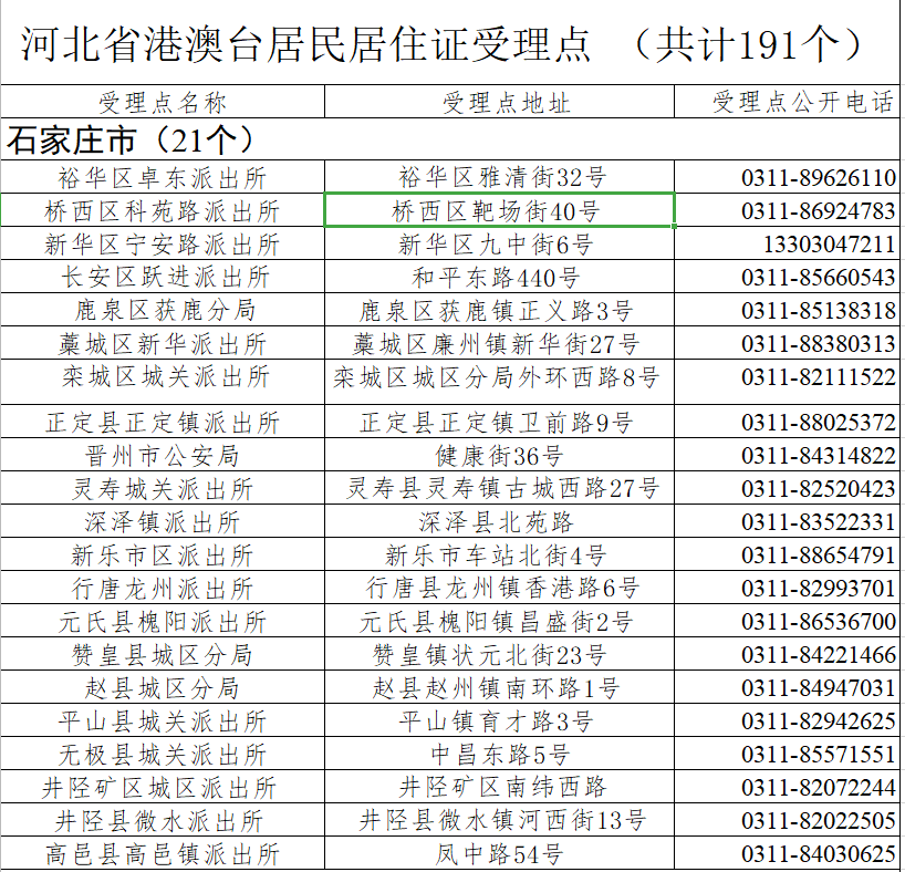 附:全省港澳臺居民居住證受理點(diǎn)