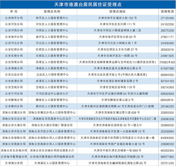 天津北方網(wǎng)訊:在昨日召開的在津港澳臺居民居住證申領發(fā)放辦法座談會上,我市公安機關就港澳臺居民在津申領居住證的政策進行了詳細解讀。從9月1日起,公安機關本著“就近、方便”的原則,在全市各區(qū)共設置了24個受理點,全面開展港澳臺居民居住證受理業(yè)務。