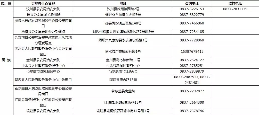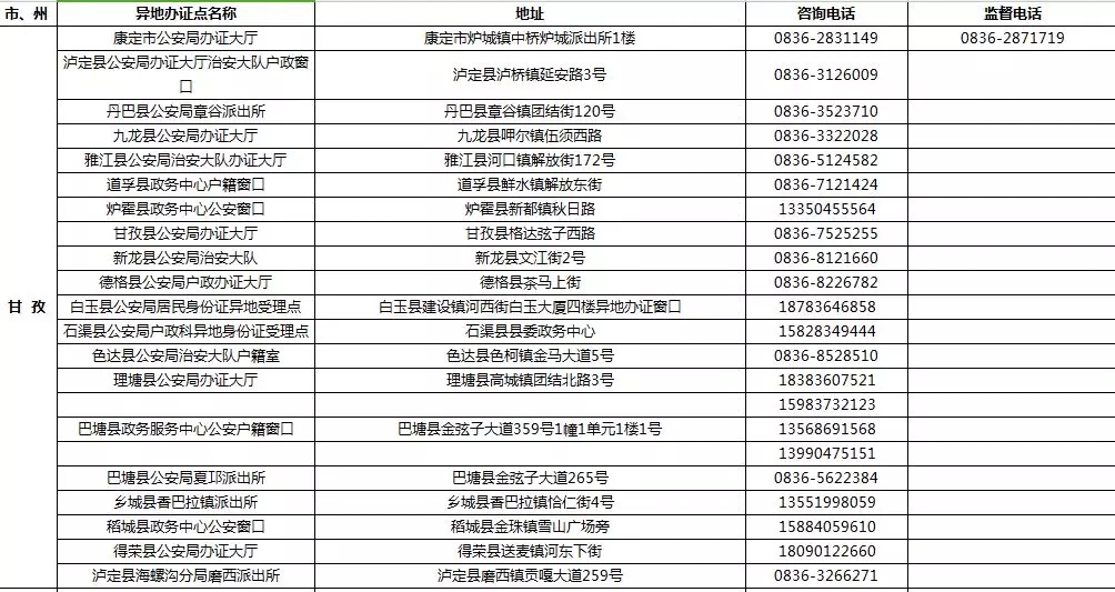 四川省港澳臺(tái)居民居住證受理點(diǎn)名稱、地址,咨詢及監(jiān)督電話: