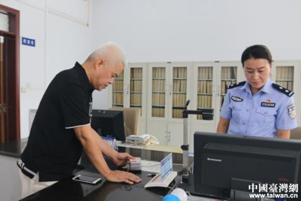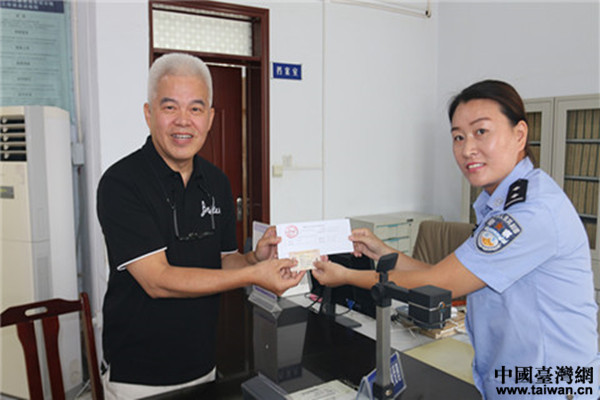 中國臺灣網(wǎng)9月7日安陽訊 《港澳臺居民居住證申領(lǐng)發(fā)放辦法》自9月1日起施行。9月5日上午,安陽市臺商投資企業(yè)協(xié)會籌備委員會主任、河南筷樂商貿(mào)有限公司總經(jīng)理廖振勇先生在河南省安陽市臺辦工作人員的陪同下,到安陽市公安局北辰派出所戶籍室申請辦理臺灣居民居住證。這是安陽市受理的首張臺灣居民居住證申請。