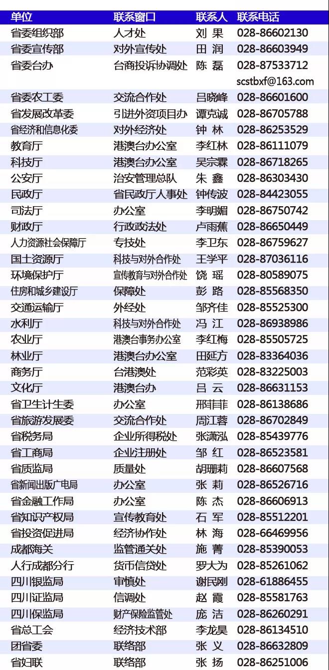 落實“川臺70條” 四川39個省直部門(單位)公布聯(lián)系窗口