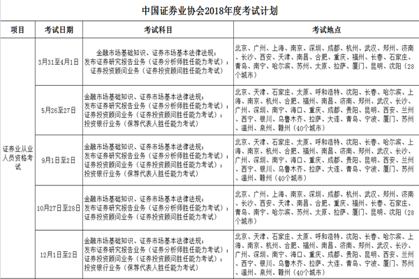 詳情可查看:中國證券業(yè)協(xié)會2018年度考試計劃公告
