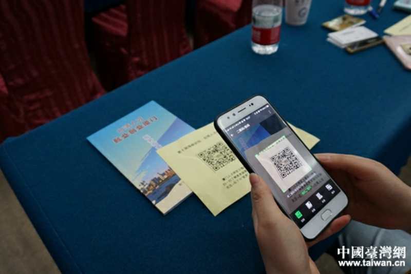 臺灣青年掃描二維碼關(guān)注廈門人才網(wǎng)官方網(wǎng)站微信公眾號。(中國臺灣網(wǎng) 汪明珠 攝)