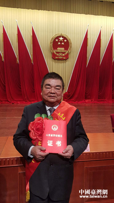 圖為劉竹承當(dāng)選山東首位臺籍勞模。(劉竹承供圖)