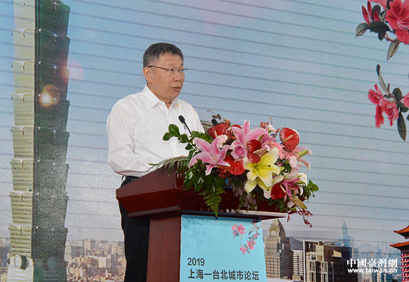 臺(tái)北市市長(zhǎng)柯文哲致辭。(圖片來源:上海市臺(tái)辦)