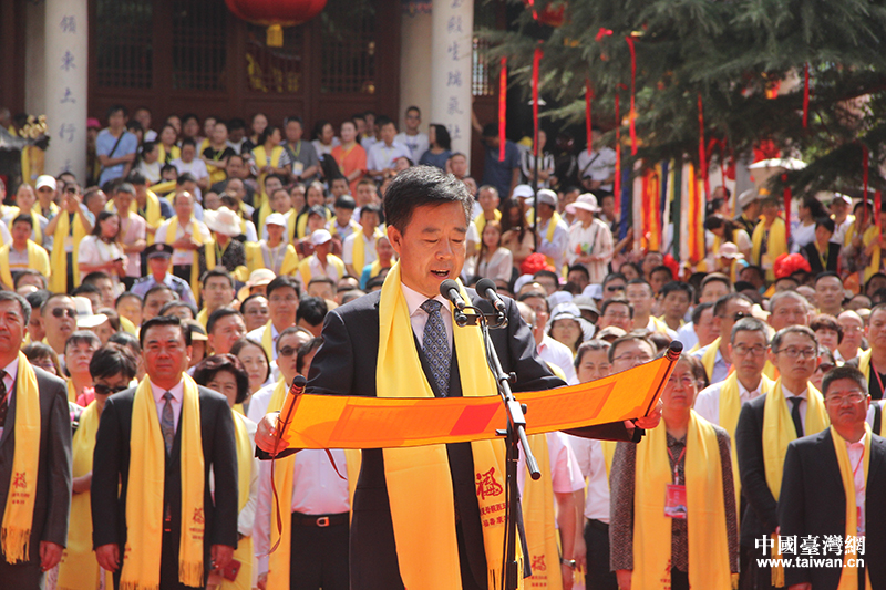 平?jīng)鍪惺虚L王奮彥恭讀謁禮文。(中國臺灣網(wǎng) 普燕 攝)