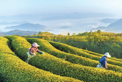 茶農(nóng)在臺(tái)源茶葉有限公司種植基地采茶。溫州泰順縣臺(tái)辦供圖