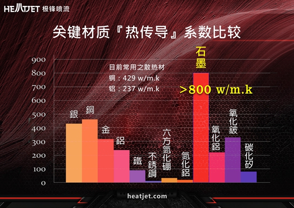 HEATJET關(guān)鍵材質(zhì)“熱傳導(dǎo)”系數(shù)比較圖