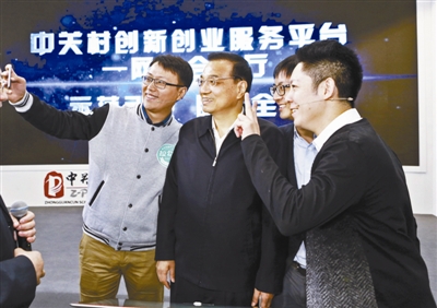 李克強(qiáng)來(lái)到中關(guān)村活動(dòng)周啟動(dòng)儀式主會(huì)場(chǎng),北京、遼寧、上海、安徽、湖北、四川、陜西、深圳等省市和計(jì)劃單列市政府主要負(fù)責(zé)人通過(guò)視頻匯報(bào)了當(dāng)?shù)貏?chuàng)業(yè)創(chuàng)新相關(guān)情況。5位創(chuàng)業(yè)創(chuàng)新者上臺(tái)以點(diǎn)贊手勢(shì)推出“雙創(chuàng)”活動(dòng)周標(biāo)識(shí)。李克強(qiáng)打破既定議程即席講話?偫砥鹕碜呱现v臺(tái)說(shuō),今天本來(lái)沒(méi)準(zhǔn)備講話,被現(xiàn)場(chǎng)熱烈氛圍感染,上來(lái)說(shuō)幾句為創(chuàng)業(yè)創(chuàng)新者“站臺(tái)”。他說(shuō),當(dāng)前,我國(guó)發(fā)展進(jìn)入新常態(tài),正處在發(fā)展方式和新舊動(dòng)能轉(zhuǎn)換的關(guān)鍵期,要以大眾創(chuàng)業(yè)、萬(wàn)眾創(chuàng)新這一結(jié)構(gòu)性改革激發(fā)全社會(huì)創(chuàng)造力,打造發(fā)展新引擎,今年在世界經(jīng)濟(jì)低迷和金融市場(chǎng)動(dòng)蕩的情況下,前三季度我國(guó)經(jīng)濟(jì)增長(zhǎng)6.9%,保持在7%左右,尤其是就業(yè)比較充分,其中“雙創(chuàng)”起了重要支撐作用!半p創(chuàng)”也有力促進(jìn)結(jié)構(gòu)調(diào)整,將推動(dòng)發(fā)展從過(guò)度依賴自然資源轉(zhuǎn)向更多依靠人力資源,促進(jìn)經(jīng)濟(jì)中高速增長(zhǎng)、邁向中高端水平。