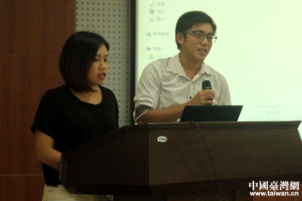 臺灣學(xué)生黃昀等(京東實習(xí))分享實習(xí)心得。(中國臺灣網(wǎng) 陳文韜 攝)