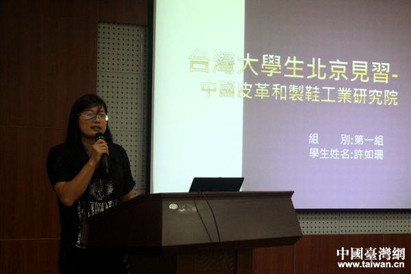 臺灣學(xué)生許如珊(中國皮革和制鞋工業(yè)研究院實習(xí))分享實習(xí)心得。(中國臺灣網(wǎng) 陳文韜 攝)