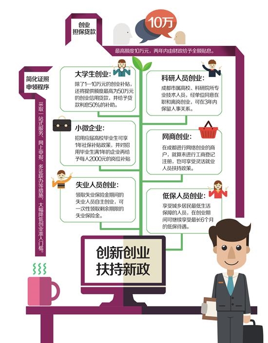 “本次出臺的就業(yè)創(chuàng)業(yè)綱領(lǐng)性文件,其中有8條直接助推大眾創(chuàng)業(yè)、萬眾創(chuàng)新。”成都市人社局有關(guān)負責人表示。
