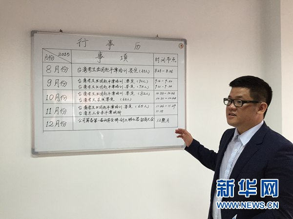 如今,孟憲霆構(gòu)想的平臺正有條不紊地運轉(zhuǎn)著?春闷教丁熬C合實驗區(qū)”和“自貿(mào)區(qū)”政策疊加蘊藏的光明前景,不久前他把機構(gòu)落戶在平潭臺灣創(chuàng)業(yè)園。墻上的行事歷顯示,從8月到11月,公司每個月都會組織臺灣學生出團赴平潭培訓、鑒定,相關(guān)工作已安排到了12月份。