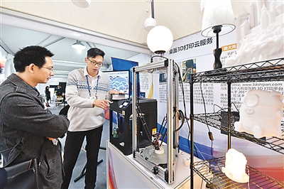 圖為創(chuàng)新創(chuàng)業(yè)者介紹3D打印技術。