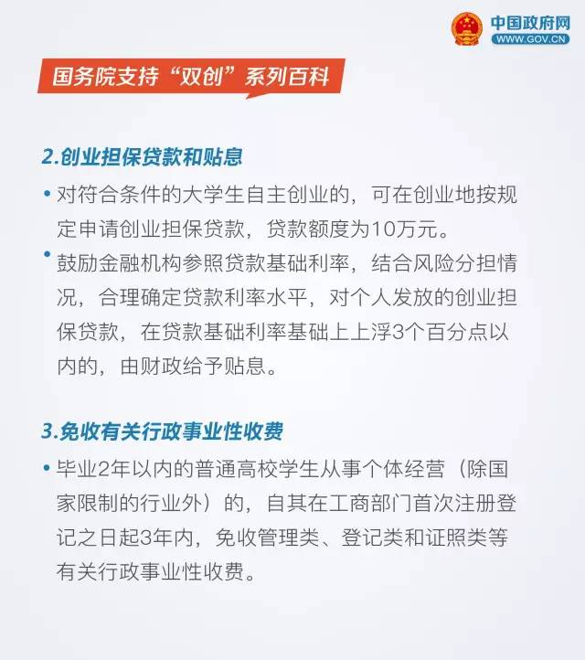 即日起,中國政府網(wǎng)新媒體將推出國務(wù)院支持“雙創(chuàng)”系列百科,針對(duì)不同創(chuàng)業(yè)群體、不同創(chuàng)業(yè)問題,逐一詳細(xì)梳理。