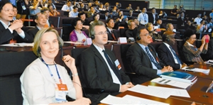 參加第十七屆高交會論壇的中外嘉賓,認真聽取發(fā)言。 深圳特區(qū)報記者 陳富 攝