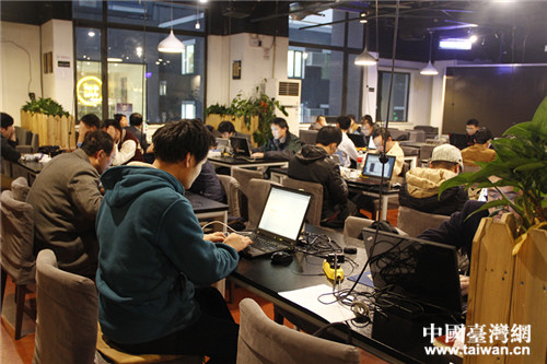 11月19日,眾多創(chuàng)客集聚車庫咖啡一幕。據(jù)悉,車庫咖啡主要為早期創(chuàng)業(yè)者提供開放式的辦公環(huán)境。(中國臺(tái)灣網(wǎng) 郜利敏 攝)