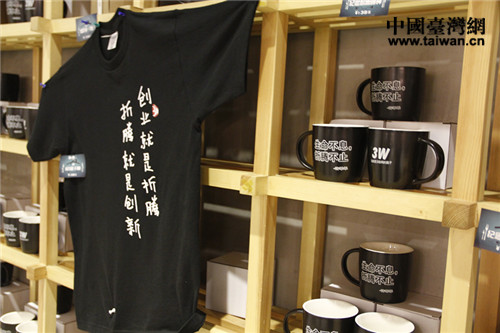 中關(guān)村創(chuàng)業(yè)大街3W咖啡店內(nèi)展示區(qū),標榜“生命不息 折騰不止”的口號。(中國臺灣網(wǎng) 郜利敏 攝)