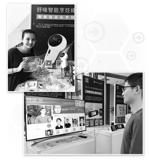左圖北京奈思膳品科技有限公司的劉嘉瑩正在展示舒味智能烹飪棒。