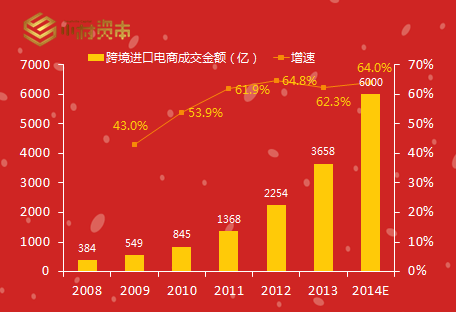2007年以前,海淘還處于萌芽期,小而散,2007年淘寶全球購(gòu)上線,海淘正式進(jìn)入人眼前,但依舊帶有灰色色彩,資本對(duì)該行業(yè)投資較為謹(jǐn)慎。根據(jù)艾瑞咨詢統(tǒng)計(jì),2008年以來,跨境進(jìn)口電商交易額年復(fù)合增長(zhǎng)率達(dá)50%以上。2014年,交易額預(yù)計(jì)超過6000億元,預(yù)測(cè)未來三年年復(fù)合增長(zhǎng)率仍高達(dá)35%。國(guó)內(nèi)跨境進(jìn)口電商熱持續(xù)升溫,政策支持陽光海淘,各路資本蜂擁而至。
