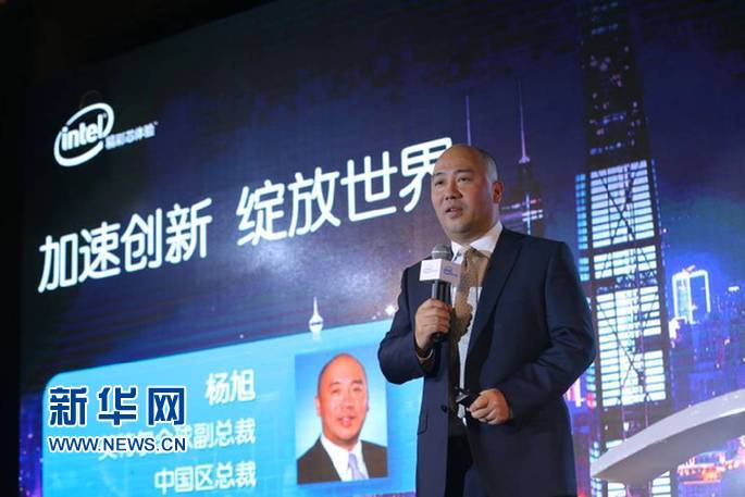 圖為英特爾全球副總裁兼中國區(qū)總裁楊旭在現(xiàn)場致辭。