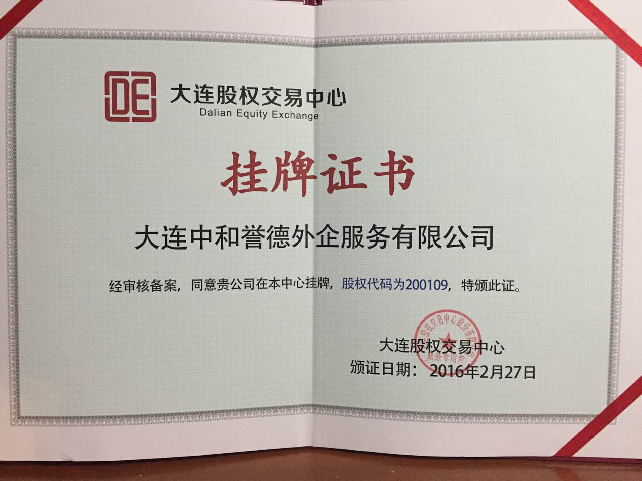 大連股權(quán)交易中心舉行企業(yè)掛牌儀式