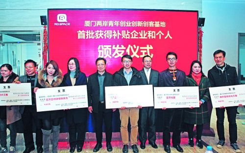 廈門兩岸青創(chuàng)基地首批獲得補(bǔ)貼企業(yè)和個(gè)人頒發(fā)儀式。鄭偉明 /攝