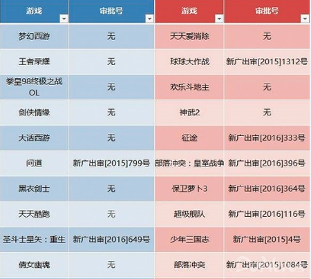 很多已經(jīng)上線的知名游戲沒有獲得審批號