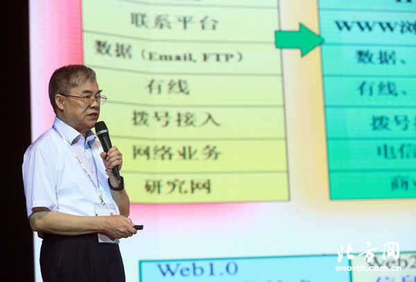 在開幕式后舉行的高峰論壇上,中國互聯(lián)網(wǎng)協(xié)會理事長、中國工程院院士鄔賀銓以《互聯(lián)網(wǎng)技術(shù)與應(yīng)用的發(fā)展》為題作了主旨演講。