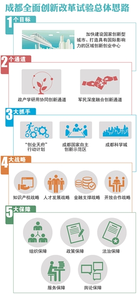 去年8月,中央決定四川依托成都、德陽、綿陽地區(qū)探索系統(tǒng)推進(jìn)全面創(chuàng)新改革試驗的有效機制、模式和經(jīng)驗,開展先行先試。我市按照中央和省委決策部署,大力實施創(chuàng)新引領(lǐng)行動,將全面創(chuàng)新改革作為全市的“一號工程”,為改革試驗確定了“一個目標(biāo)、兩個通道、三大抓手、四大戰(zhàn)略、五大保障”的總體思路,加快建設(shè)國家創(chuàng)新型城市、打造具有國際影響力的區(qū)域創(chuàng)新創(chuàng)業(yè)中心。