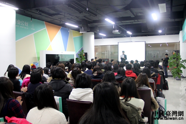 中國(guó)臺(tái)灣網(wǎng)1月22日北京訊 (記者 陳文韜)伴隨著優(yōu)美動(dòng)聽的音樂(lè),一幅幅帶有“臺(tái)灣味道”辦公環(huán)境的畫面呼之欲出,吸引了在場(chǎng)所有臺(tái)灣青年的目光......1月21日在北京創(chuàng)業(yè)公社·中關(guān)村國(guó)際創(chuàng)客中心舉辦的海峽兩岸青年交流協(xié)會(huì)交流團(tuán)中關(guān)村參訪活動(dòng)中,創(chuàng)業(yè)公社臺(tái)灣專區(qū)的負(fù)責(zé)人鄭博宇正在向到訪的臺(tái)灣青年們介紹創(chuàng)業(yè)公社打造的“臺(tái)灣創(chuàng)客驛站”。