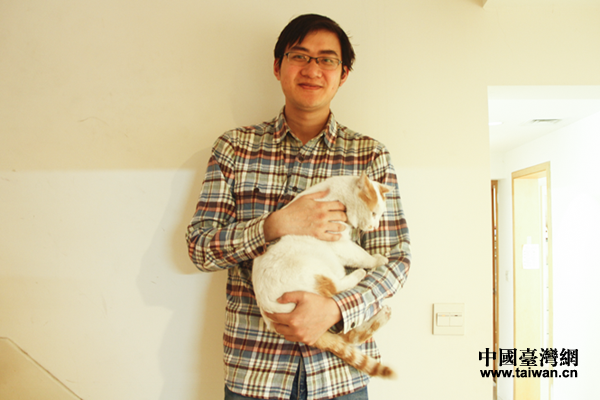 袁行遠(yuǎn)和他的愛(ài)貓“糖豆”(中國(guó)臺(tái)灣網(wǎng) 陳文韜 攝)