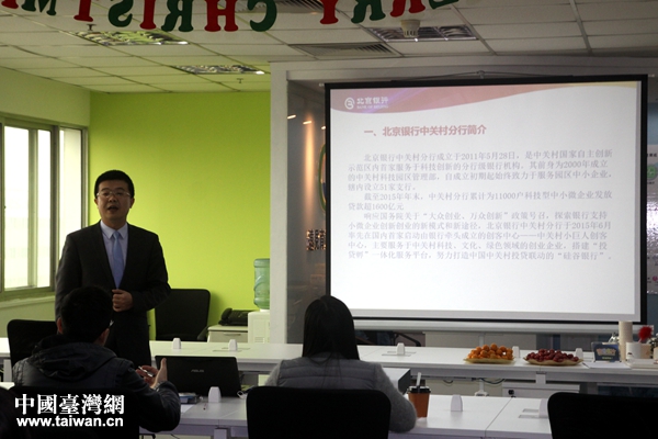 北京銀行代表向兩岸青年創(chuàng)客介紹資金信貸服務(wù)。(中國臺灣網(wǎng) 陳文韜 攝)