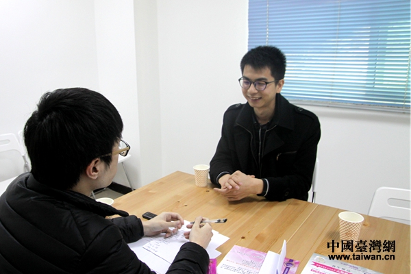 臺灣青年創(chuàng)客趙翌捷接受本網(wǎng)記者采訪。(中國臺灣網(wǎng) 于淼 攝)