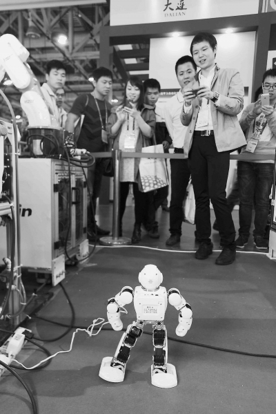 工博會(huì)上,機(jī)器人“賣萌”。本報(bào)記者施辰靜攝