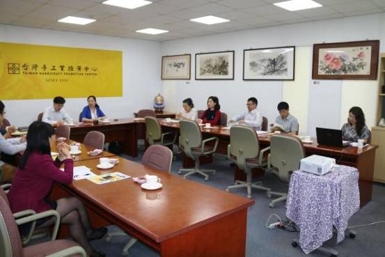 圖為:參訪團(tuán)一行在臺(tái)灣手工業(yè)推廣中心參觀考察。 攝影:劉雪峰