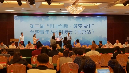 海峽之聲網(wǎng)北京訊(記者楊娜)5月18日下午,由溫州臺灣青年創(chuàng)業(yè)就業(yè)服務(wù)中心舉辦的2016“創(chuàng)業(yè)創(chuàng)新 筑夢溫州”臺灣青年人才對接會在北京舉辦,活動吸引了150多位在京高校深造的臺籍博士生、碩士等參加。