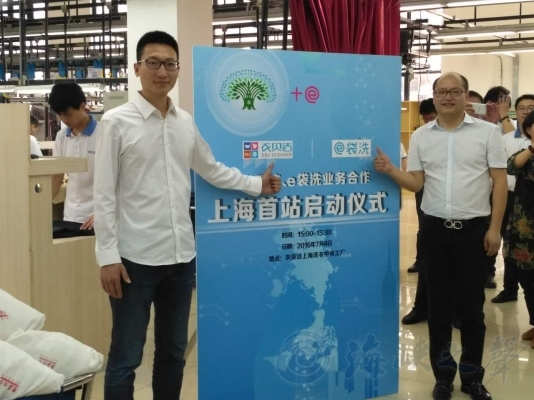 e袋洗CEO陸文勇及衣貝潔總經(jīng)理錢(qián)永春在啟動(dòng)儀式現(xiàn)場(chǎng)