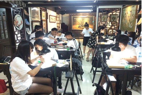 “體驗溫州發(fā)展 放飛創(chuàng)業(yè)夢想” 實習實踐活動按計劃進行。來自臺灣的同學們認真的投入到第一階段的學習中。他們被分成兩組,在浙江創(chuàng)意園的工作室,分別跟隨資深大師,進行甌塑、甌繡的學習體驗。
