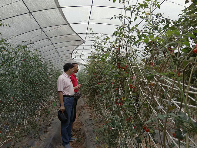 陳福林主任察看臺(tái)商吳蒞興小蕃茄試驗(yàn)地