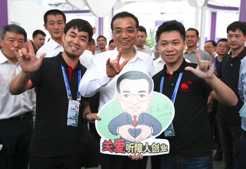 【李克強(qiáng)用“愛(ài)”的手勢(shì)為聽(tīng)障創(chuàng)業(yè)團(tuán)隊(duì)加油】“總理,我們這個(gè)手勢(shì)是聽(tīng)障人國(guó)際手勢(shì),表示‘愛(ài)’的意思!痹谝晃宦(tīng)障創(chuàng)業(yè)團(tuán)隊(duì)負(fù)責(zé)人示范下,總理也打出同一手勢(shì)。這是12日下午全國(guó)雙創(chuàng)周深圳主會(huì)場(chǎng)上動(dòng)人的一幕。李克強(qiáng)對(duì)這一創(chuàng)業(yè)團(tuán)隊(duì)給予特殊關(guān)注,并應(yīng)邀在“關(guān)愛(ài)聽(tīng)障人創(chuàng)業(yè)”畫(huà)板上簽上自己的名字。