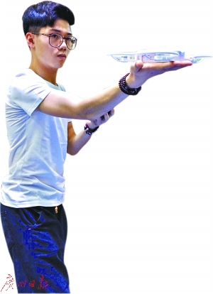 年輕創(chuàng)客界展示口袋自拍無(wú)人機(jī)。