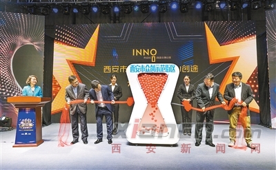 嘉賓、領導為西安市眾創(chuàng)示范街區(qū)揭牌。 記者 竇翊明 攝